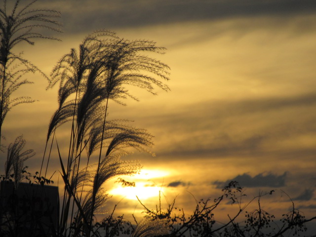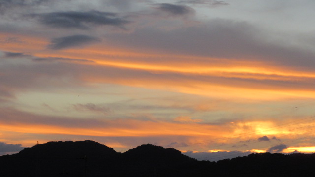 ひとりごと 2015/11/19 晩秋の夕暮れ 晩秋の夕暮れ。秋の陽はつるべ落としとは言われながらも、ゆっくりと一日を振り返る時間くらいはある。いつの頃からか暮れなずむ夕景が、心を癒してくれている。目を見張るような夕焼けを見ていると、いやな事も忘れシャッターを切ったり、逆にシャッターを切るのを忘れて見とれている。期待している時には、案外つまらない日没に終わってしまう。そんな時はドッと疲れが増す。逆にカメラを持たずに出掛けたり、電池切れの時に限って、素晴らしい夕焼けに出くわす時がある。自分の運のなさを思い知らされる。悲喜交々である。