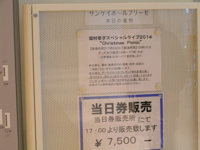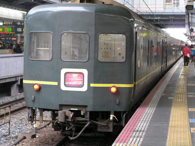 岡村孝子 2014/12/12 クリスマスライブ番外編 ライブ当日はsa-chanと大阪駅で『お茶』の約束をしました。ライブまでの高まる気持ちを、ファンとともに時間を共有するというのはも至福の時間です。当日は予定より早く現地入り出来そうなので、もうひとつの楽しみを実現しようと、急遽思い立ちました。下準備は全くなしです。その事がその後の無駄な時間を過ごす事になったのです。地元駅の駅員に『トワイライトの出発時間何時ですか』ぎりぎり間に合う時間を告げられた。 大阪駅11時50分。告げられた時間にホームには誰もいなかった。もう出てしまったのか。それとも新大阪駅の間違いか。何も事前に調べてなかったのを悔やんだ。 結局は臨時列車で、当日は札幌からの到着便のみとわかった。それも雪のための遅延で1時間遅れです。結局大阪駅3番ホームの寒風の中、ふたりでトワイライトに巡り合えたのは、当初予定から2時間遅れの13時50分でした。ホント、趣味の範囲を超えた事にお付き合い頂き、ありがとうございました。その後地下街で食べた牡蠣カレーは特別美味しかったです。トワイライトを待ってる間に撮ったスーパーはくとです。逸る気持ちにやっと見せた勇姿。こうして見ると格好いいですね。ところどころで乗車の記念撮影していました。こういう人たちって羨ましいね。いつかは乗ってみたい(^_-)-☆と思ってたけど、もう3か月しか無いんですね。このマークが憧れのひとつ。いいですね(^v^)何のマークかわからないけど、格好いいから、パチリ。ヘッドマーク。この周りに人だかりが出来ていました。撮り鉄にはたまらないようです。いつしか撮られていました(^v^)会場近くのカフェで孝子さん談義。冷えた身体に、身も心も温まりました(^_-)-☆会場には当日券有りとのこと。ポスターもチラシもないロビーは、ファンとしては寂しいですね。時間が経つとともに、見なれたあの人、この人との再会。お馴染みさん、久々の方々など楽しいひとときでした。 孝子さんには色んな所へ連れて行って頂きました。孝子さんのライブが無かったら、わざわざ大阪駅まで撮りに行ったりしてなかったでしょう。ライブのついでに、今回ももうひとつの楽しみを満喫しました。でも寒い中いつ到着するかわからないのに、快くお付き合頂いたsa-chanに感謝します。 PR