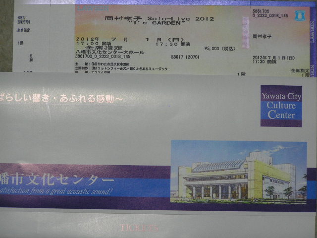 岡村孝子 2012/04/15 八幡会場のチケット到着 先日夕方届いた。あて名書きの手間や苦労と、この素早い送付を考えると、頭が下がる。そういえば電話した時にも、チケット送付に関して、細々した注意をされていた。手間と費用を考えれば、このチケットは本当に大事にしなくてはならない。代金も最近では珍しく5000円なり。 孝子さんと視線を交わす事のできるこの距離で、どんな顔をすればいいのでしょうね(^v^) PR