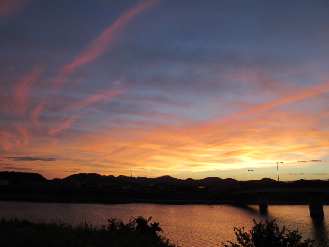 | 台風接近前日の夕景(翌日は雨でした。 | 台風一過の夕景。心も澄みますね(^_-)-☆ |