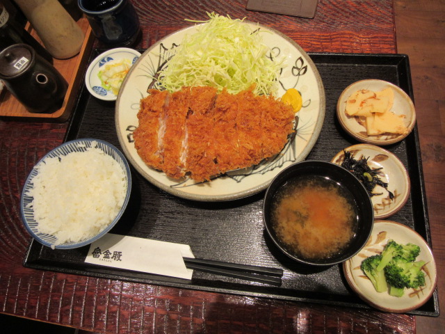 | とんかつ『富金豚』にした。 比較的店内も広く、回転も速そうだった。 あまりうろうろしても時間のロスである。 何しろ遅くても15時24分発の電車に乗りたい。 |