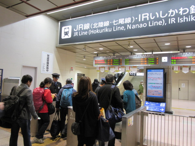 | 改札へ急ぎ、もしかしたら一本早いのに乗れそう。 ここからは七尾線での旅です。 一時間のんびりの旅。 過って能登の先端まで自転車でサイクリングしていたあの日、 まだまだ若かったのです(^_-)-☆ |