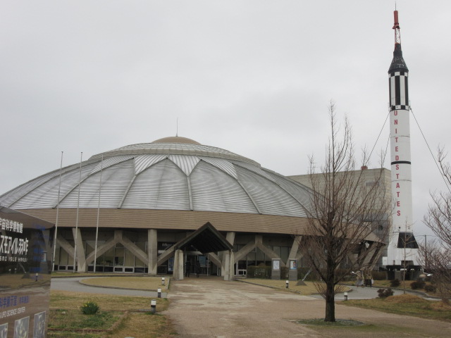 | ライブ会場は丸い建物の後ろ側の四角い建物。 丸い建物内には、『宇宙関連』の物だらけ。 孝子さんを追って来た者には、ちょっと場違いのよう。 高校生の時、宇宙や気象に興味を持ってたけれど、それは過去の夢。 |