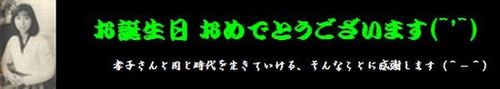 岡村孝子 2013/01/29 岡村孝子様 お誕生日おめでとうございます(^v^) 3月の新曲 『No rain No rainbow』の替え歌でお祝いとします(^v^)いつも我らファンの心の支えであり、人生の道標である孝子さんに感謝します。いつまでも女性としても可愛く、今まで通り変わらぬマイペースでの、ご活躍を期待しています。 2013.1.29 シアワセ ユキ Run after a rainbow Run after a rainbow どんな時も 悲しいことや楽しい時も あなたといつも超えてきたよ はるか遠くから注ぐ光が 聖母(マリア)のように優しく包み込んでくれる わたしがいつの日も 未来(あした)を見つめられるように ♪ ♪~♪ ♪♪♪~ 瞳に光るの歓喜のしずくが 朝陽に照らされまぶしいね あなたを未知標にしたことは 何ひとつの間違いはなく 迷った想い出の日々もほほえんでる ♪ ♪~♪ ♪♪♪~ どんなにあなたから遠くても ひとつひとつ心に刻んで あなたは変わらぬ心の灯りでいて ラ ラ~ラ ラララ~ ラ ラ~ラ ラララ~ Run after a rainbow どんな時も ♪ ♪~♪ ♪♪♪~ ラ ラ~ラ ラララ~ ラ ラ~ラ ラララ~ Run after a rainbow あなたを追いかけてる ♪ ♪~♪ ♪♪♪~ ♪ ♪~♪ ♪♪♪~ PR