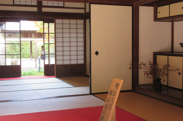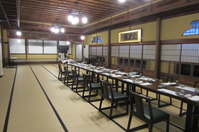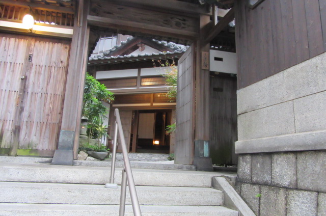| 石段を登り、正面玄関へ。高そ~な所です。 会食予定があり、10分の見学ok。二階の百畳の大広間。 |