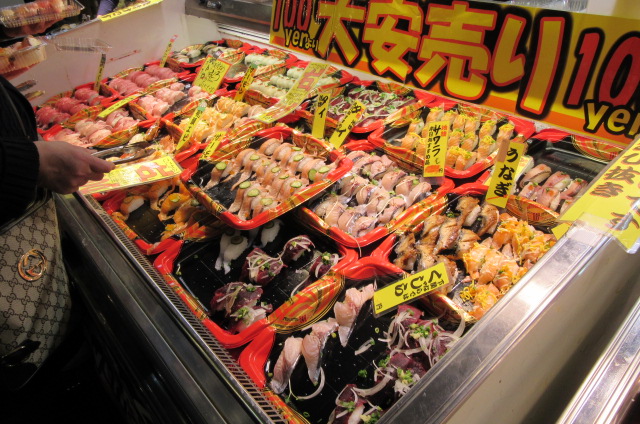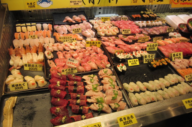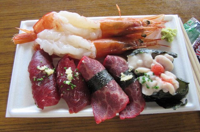 | 新鮮で色取り取りの握り鮨が並んでいました。全て食べ尽くしたい(^_^) 刺身や揚げ物も魅力です。 |
