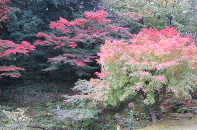 | 静かに苔や紅葉などを眺めながら、時の過ぎるのを楽しみたかった。その前を横切る喧噪の集団。 |