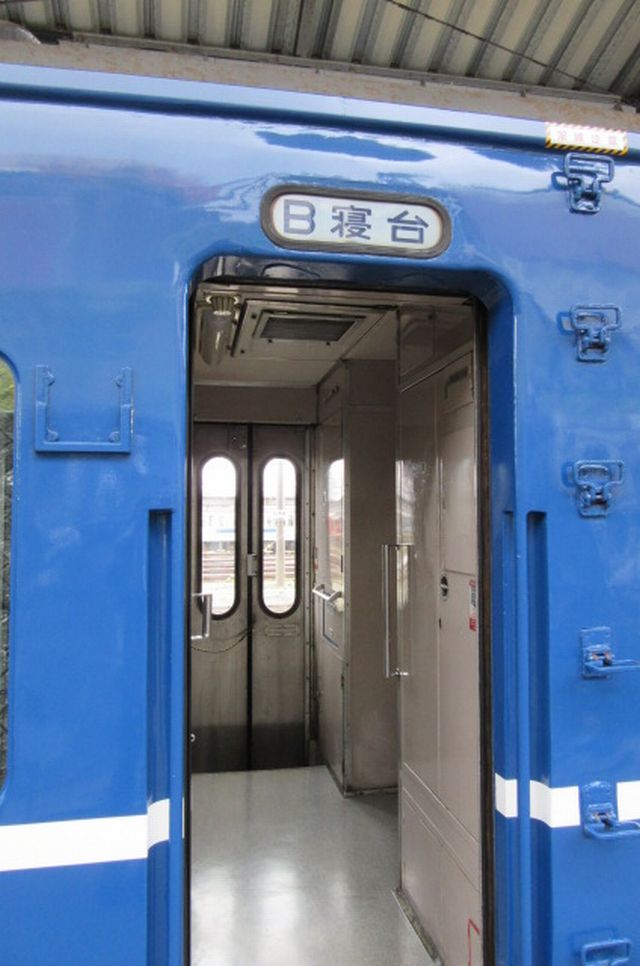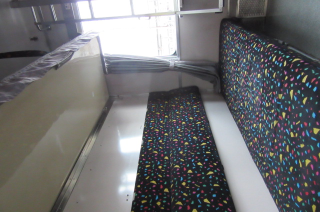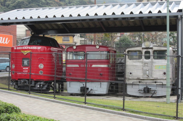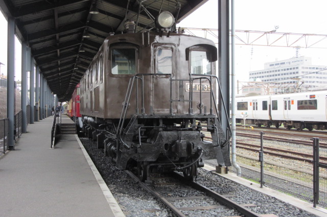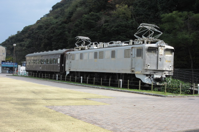 | めかり駅隣の電気機関車と客車。車内は急行『きたぐに』などで利用した『カマボコ型シート』 |