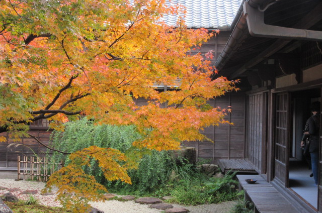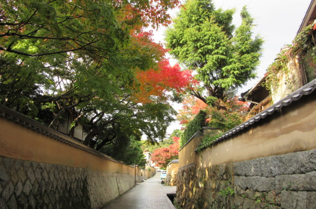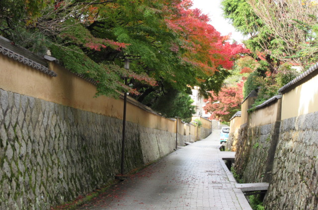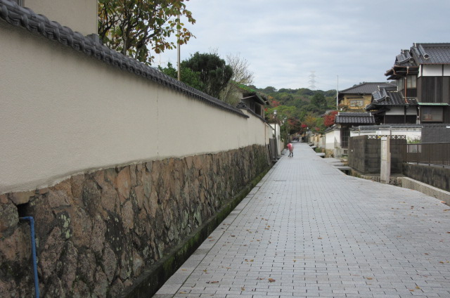| バス停『城下町長府』で下車。静かな町並みを行き交う人もまばら。紅葉もチラホラ。 |