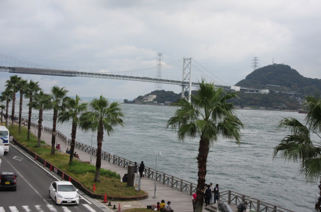 | 二階からの風景。関門海峡やこれから目指す門司港レトロ地区や関門大橋が見渡せます。 |