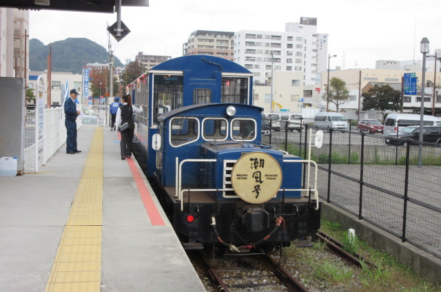 | 今日こそは乗れる『潮風号』。車内は三岐鉄道北勢線より広いような。観光客気分(^^)/~~~ |