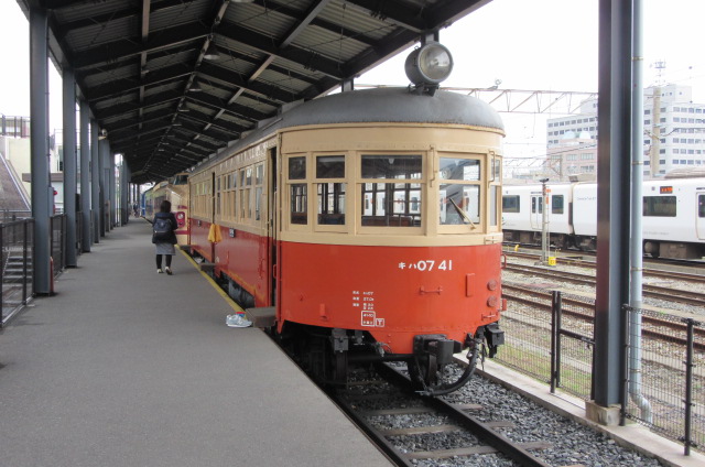 | 『キハ0741』の外観とその車内。懐かしいような、いや映画の世界かな。 |