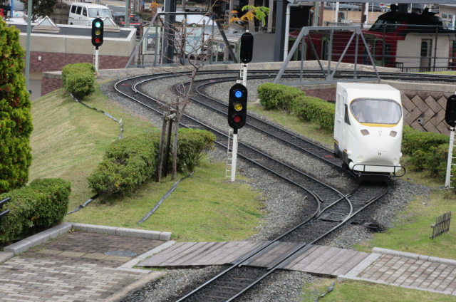 | 本館とその中の鉄道パノラマセット。何とかゲージ? また本館横にはミニ鉄道も走ってました。 |