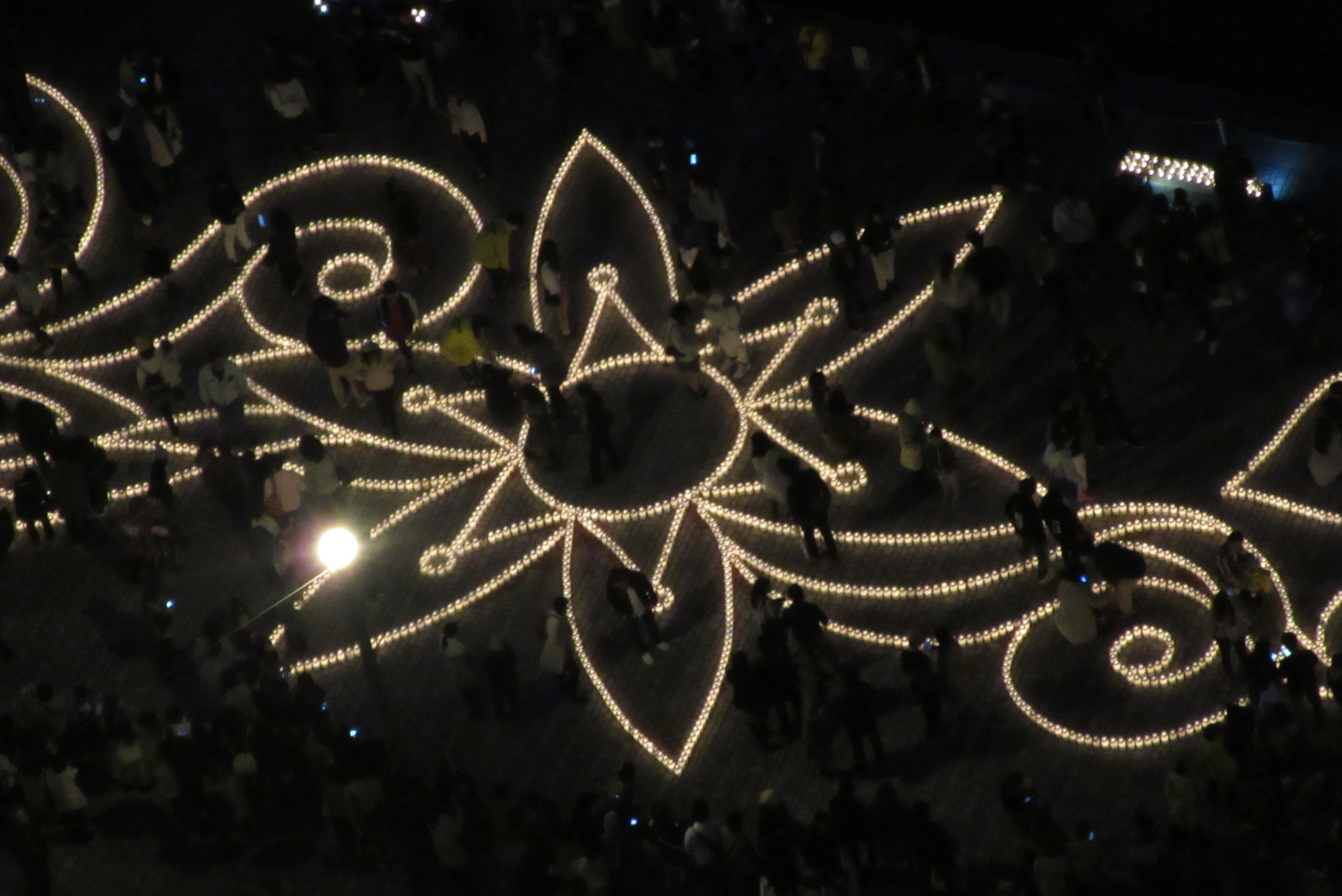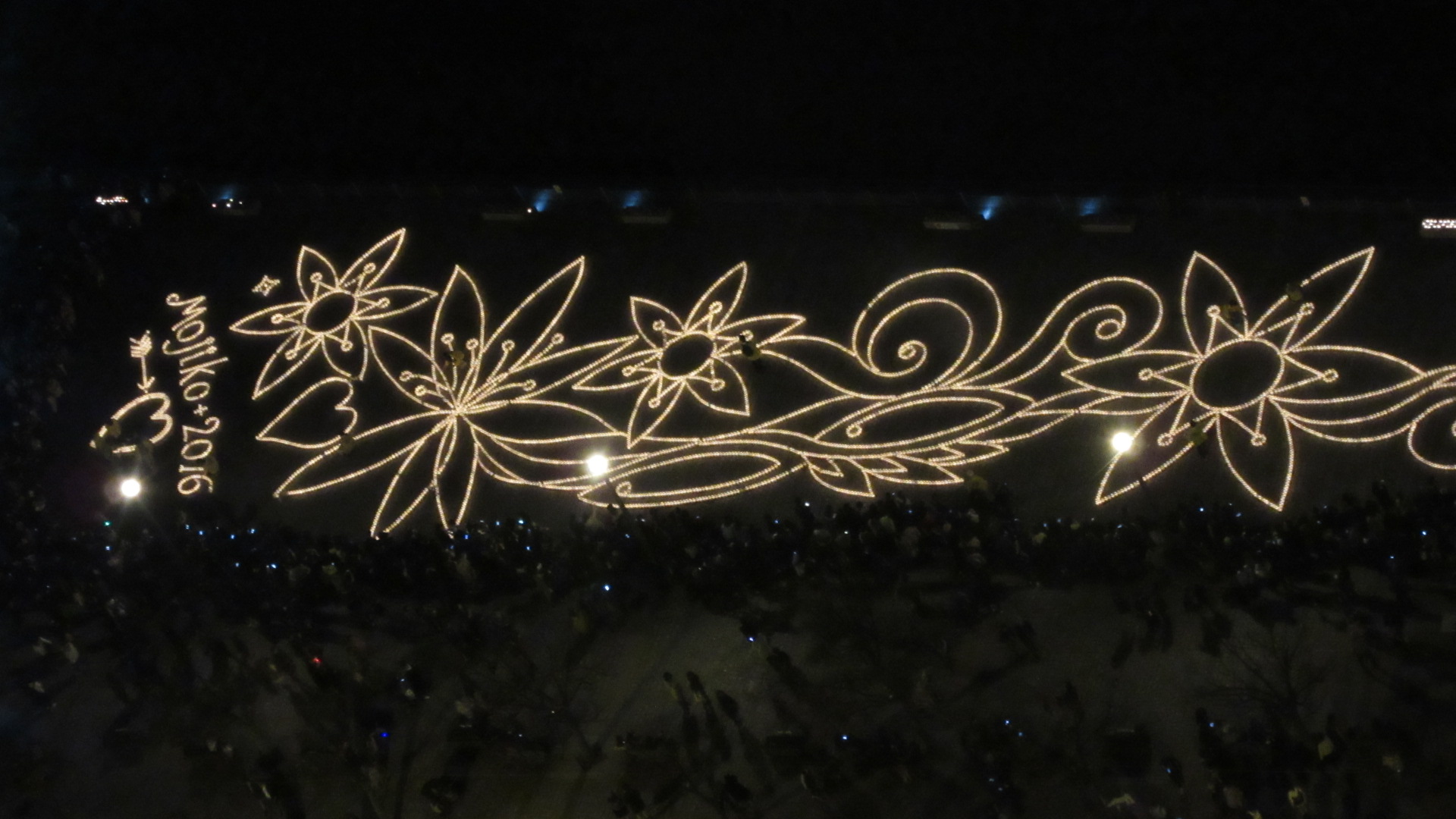 | 『門司港イルミネーション2016』眼下に無数の灯りの『想い』が灯ります。演奏も始まってます。 |