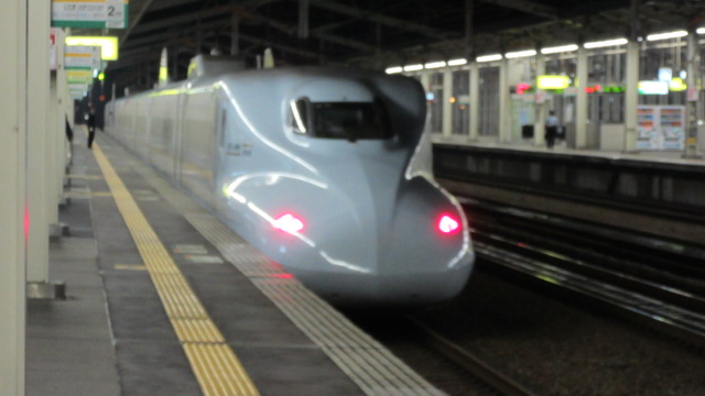 | 小倉駅で待ってたら、再び500系に遭遇。その目は『乗ってくれ(^_^)』と言ってるようです(^_^) |