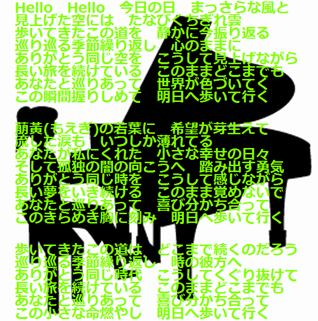 岡村孝子 2016/08/10 Hello 歌詞 インターネットでのコメント コーラスで辛島さんと平松さんに参加して頂いて、コーラスが加わることに命が吹き込まれていくなと感じました。辛島さん、平松さんありがとうございました。