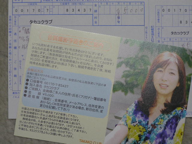 岡村孝子 2012/11/21 TAKAKO CLUB 更新手続き 今年もやって来た更新手続き。 回数にすれば免許証より多いかも(*^^)v そのたびに最近は迷う事が多かった。 でも今年ほど二つ返事ではないが、 今回ほど会員で良かったと思った事はない。 といいつつも、たつのの綾部も自力。 会員とはなんぞや!!!と思う事は変わらない。 孝子さんと繋がってる、、、というだけの事か。 PR
