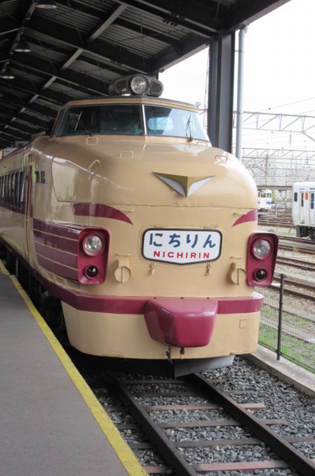 | めかり駅隣の電気機関車と客車。車内は急行『きたぐに』などで利用した『カマボコ型シート』 |