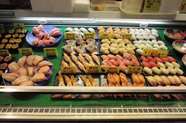 | 新鮮で色取り取りの握り鮨が並んでいました。全て食べ尽くしたい(^_^) 刺身や揚げ物も魅力です。 |