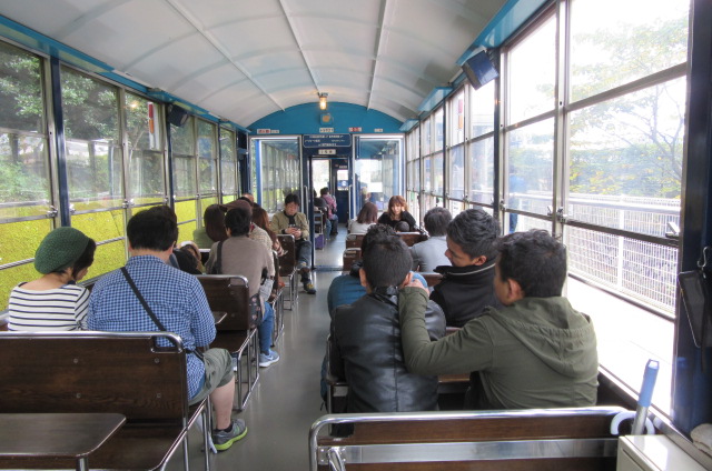 | 今日こそは乗れる『潮風号』。車内は三岐鉄道北勢線より広いような。観光客気分(^^)/~~~ |