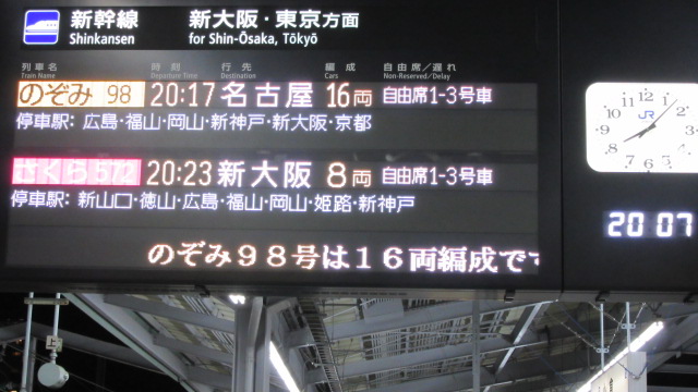 | 20時23分新大阪行き『さくら』です。今回は間違えてないですね、まりもさん(^^)/~~~ |
