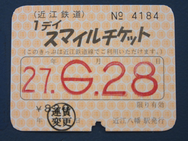| ここでの乗り換え時間は10分。 JRとは全く違い、 昭和の雰囲気、情緒だっぷり雰囲気のある近江鉄道の改札。 ここで『一日フリーきっぷ』を買う。 硬券で山型のパンチ入りです。 |