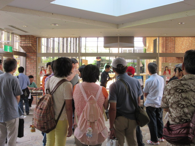 | 風呂から出ると、開館待ちの行列が出来ていました。 席も決まってるし、グッツも最近は買わない主義です。 急ぐ事もなく、列の最後尾で待ってる事に。 |