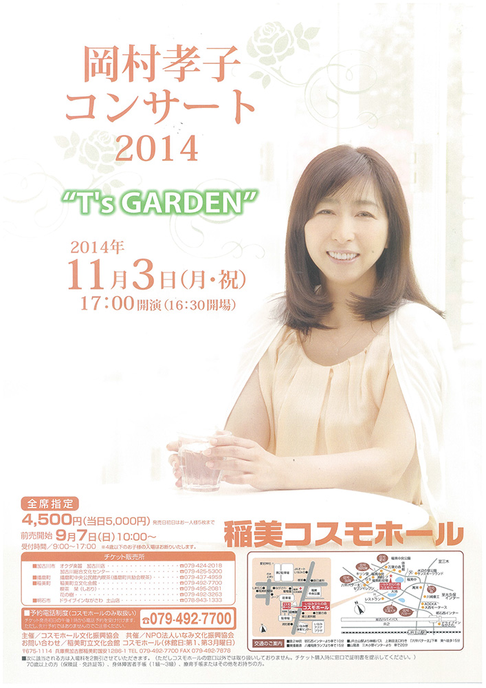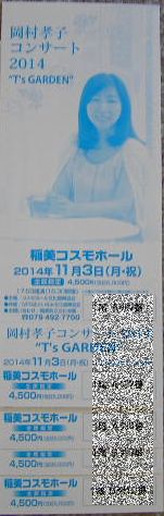 岡村孝子 2014/09/16 稲美町ライブチケット~貴女にめぐりあうために あの日から一週間が経ってしまいました。夏と秋を分ける、いや夏に終わりを告げる豪雨の中、9月6日の夕刻一路稲美町へ急いだ。もっと早い時間に自宅を出発したかったが、結局は現地会場には20時過ぎになってしまった。電話での確認では、午後一番にはひとり、夕方には3名が既に並ばれてるとの事でした。このまま変化がなければ、まあ最前列の座席は確保できる。まあ数名増えたとしても、2列目は確保できるだろう。逸る気持ちを抑え、一時間超の豪雨の道中は長かった。 会場の稲美町コスモホール駐車場に着いて、驚いた。満車なんです、どうして。雨の中、いったい何事が起ったのだ(--〆)まさか団体でチケットを買いに来てるのか、、、、。会館内に入ってその驚きが、杞憂に終わった(^-^)この日の催しのお客さんの車だった。 会場入り口には孝子さんがお出迎え(*^^)v何枚かの写真を撮り、受付けでチケットの販売箇所を問う。 すぐ裏手を見ると、そこには三名の先客があった。あれから増えていないようである 四番の定位置に座り、しばし瞑想。このままだと一列目のどこかを確保できる(-。-)y-゜゜゜ しばらくして五人目登場。孝子さんの事をかなり深くご存じ。とても足元に及ぶような方ではなさそう。隣同志になって孝子さんのお話が聴けてとても幸せ者です。 皆さんご就寝。夜も更け、雨もすっかりあがる。近場でコウロギの音が聞こえる。会館の方のご厚意で、電灯も消さないでくれた。でも今の僕には眩しい。 前日までの『想い』と、『現実』のギャップに対しての苛立ち。最前列確保が皆無になるようす。どこでどう間違えたの? 悔しさで灯りが滲む。チケットを買える喜びと、『best』から『better』への転落。ツキもこれまでか。 自家用車に戻ったり、定位置に並んだりで、悶々とした夜が明けた。正しく『眠れない夜』そのものでした。8時過ぎには20名くらいに増えていました。発売前の『探検』は楽しかったです。 発売の10時前には、40名くらいでしょうか。眠いのか、いや異常な興奮状態が続いたためなのか、トイレでめまいがした。体力より精神面での打撃が大きかった。 これが14時間の頑張りの成果です。こうした徹夜して並ぶのはこれで最後にしよう。良い事もあるけれど、デメリットも大きすぎる。 10時にチケットを買い、会館前を改めて見る。200名くらい並んでいる。たぶん『会館用』は完売になるだろう。残すは『委託用』の数十枚ですが、どうなったのか。 綾部に続いて、『悲喜こもごも』の一日でした。すでに孝子さんにお逢い出来る日まで50日を切りました。貴女に逢う事で、全ての嫌な事柄を忘れさせてくれます。『あなたにめぐりあう旅』はこれからも続きます。 今回は何にも書いてないよ(^v^) 残念でした(^_-)-☆ PR