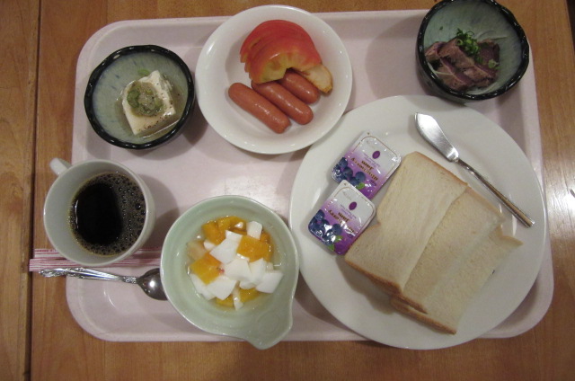 まずは朝食、席に座って失敗に気付きました。
